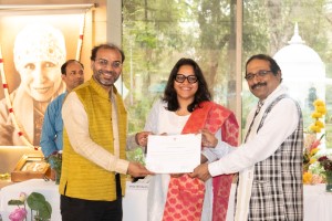 The national seminar commenced with the traditional lighting of the ceremonial lamp by Tara Jauhar, Chairperson of the Sri Aurobindo Ashram, Delhi branch.