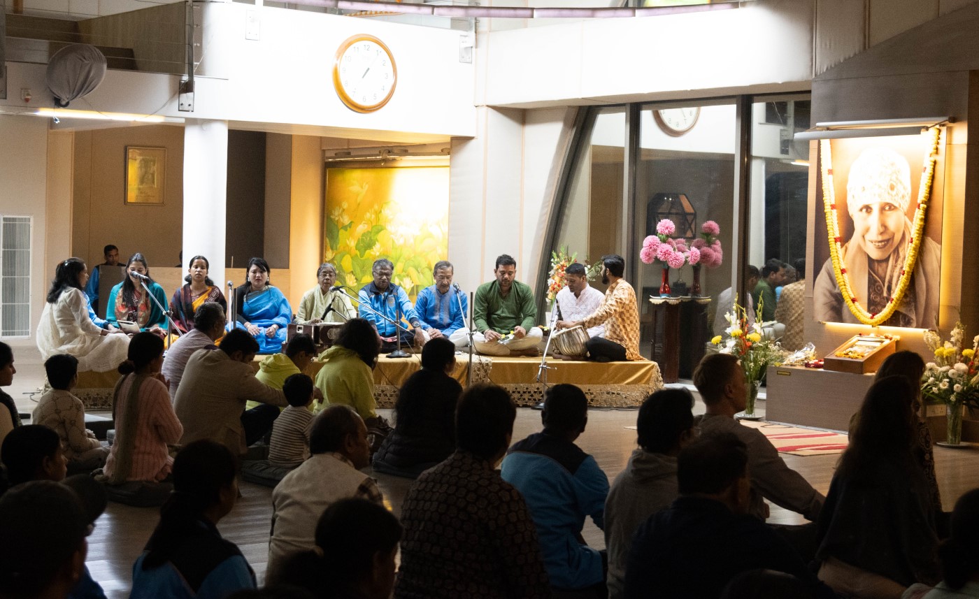 The 148th Birth Anniversary of the Mother commenced with a serene invocation in the Meditation Hall, led by Srila Basu, invoking the divine Presence and setting a deeply devotional tone for the sacred day.