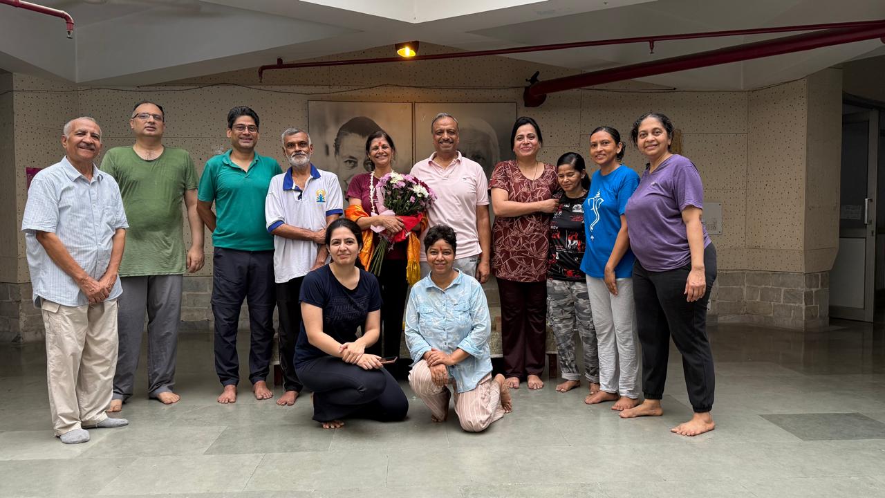 The morning yoga class at the Sri Aurobindo Ashram, Delhi Branch, honored Priya Gupta, a dedicated yoga teacher, for enhancing the lives of participants through mindful exercise, asanas, and consistent practice.