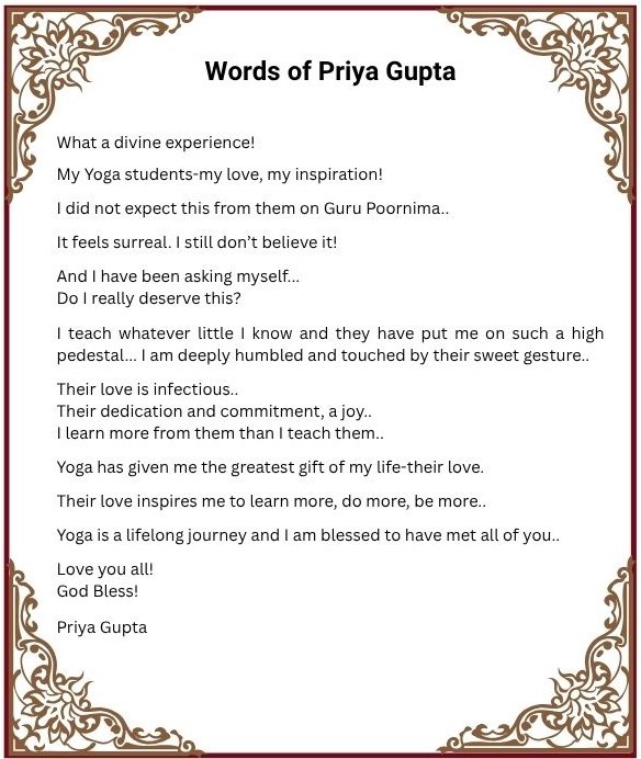 Honouring Priya Gupta, Yoga teacher, on Guru Purnima